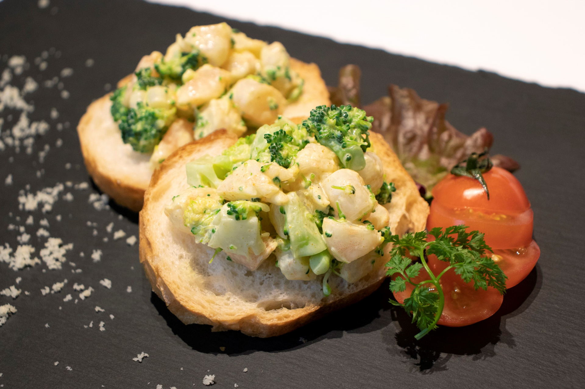 ワークショッププロの料理人が教える「ブロッコリーと海老のブルスケッタ...
