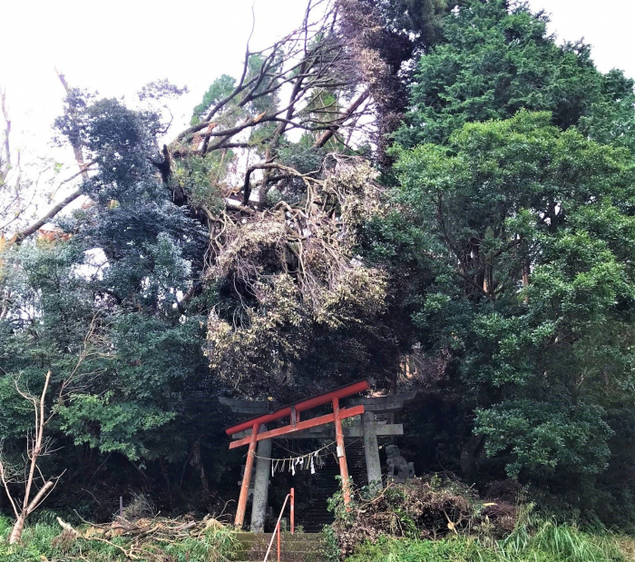 12年前と近いルートを辿り一瞬で木をなぎ倒し、多くの建物を壊滅状態に追い込みました。夏田山扇森稲荷神社も被害を免れず、屋根には椅子やドアが突き刺さり、何から手をつけて良いのかわからない状態になりました。