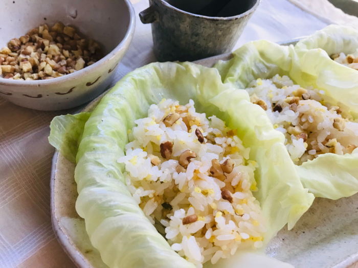 今回は、キャベツを茹でて簡単手巻きごはん!