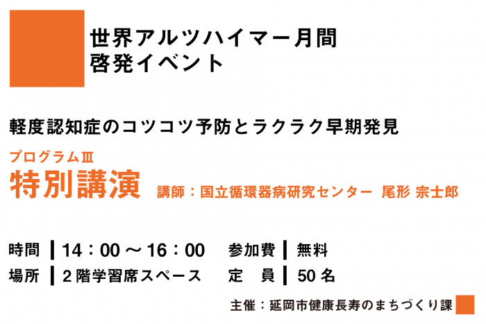 【世界アルツハイマー月間イベント】 特別講演「軽度認知症のコツコツ予防とラクラク早期発見」