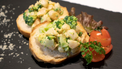 ワークショッププロの料理人が教える「ブロッコリーと海老のブルスケッタ...