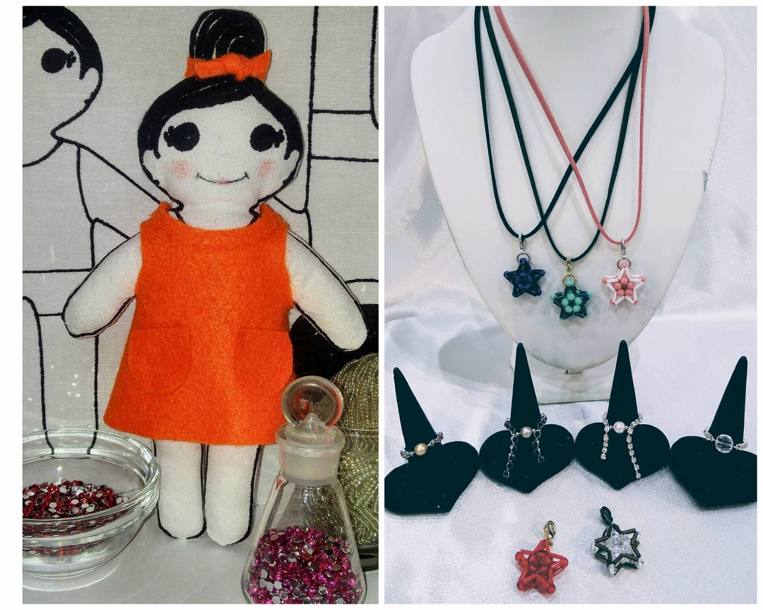 今回は大人も子どもも作れる『着せ替え人形』、年齢問わず好まれる『スターのペンダントトップ』や高級クリスタルラインストーンを組み合わせて『ビジューリング』を作ります。