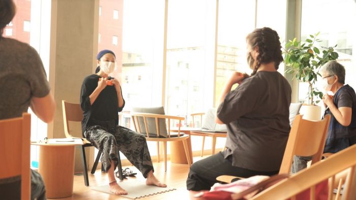 椅子に座って簡単な運動などを行うので、膝が痛い方や高齢者の方でも無理せず続けることができます。