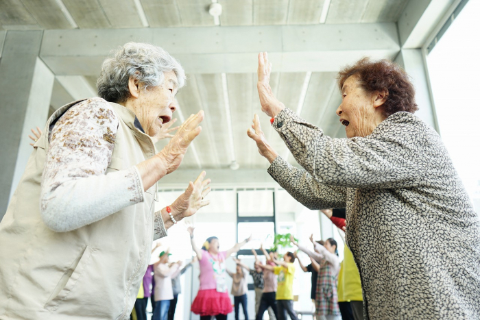 そんな皆様、全員集合。笑いヨガは、笑いの伝染力をひきだすコツがたくさん入ったエクササイズなので