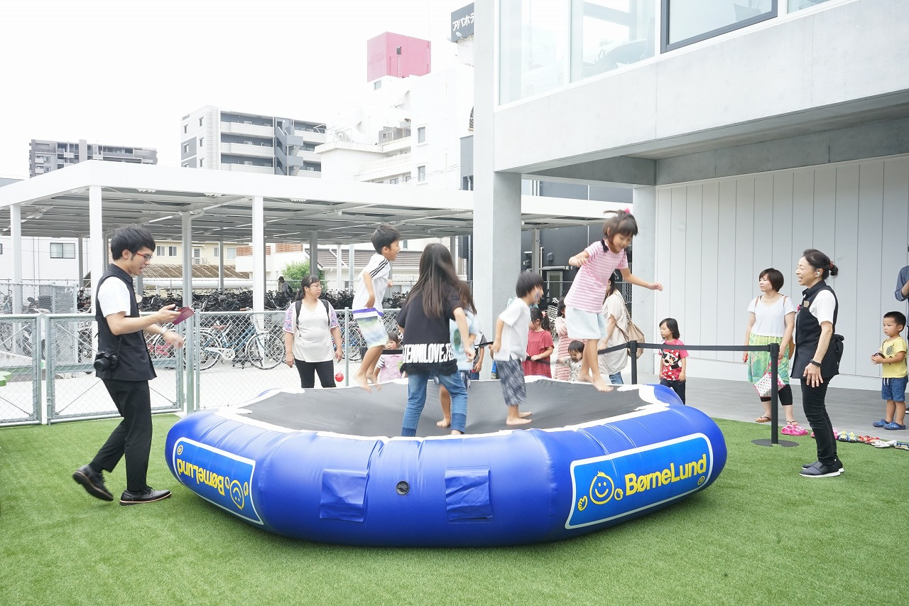 キッズガーデンでトランポリンで遊びます。トランポリンでの遊びを通して