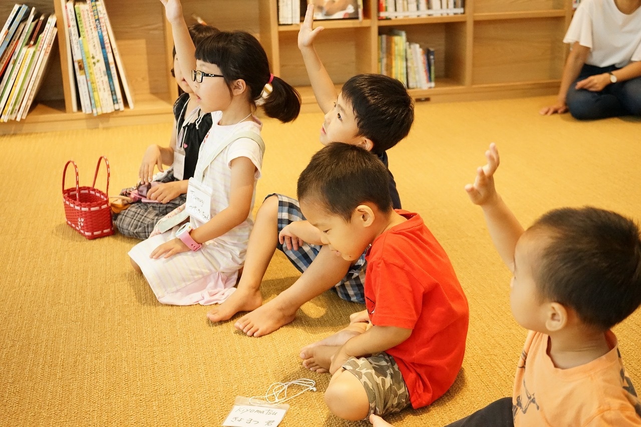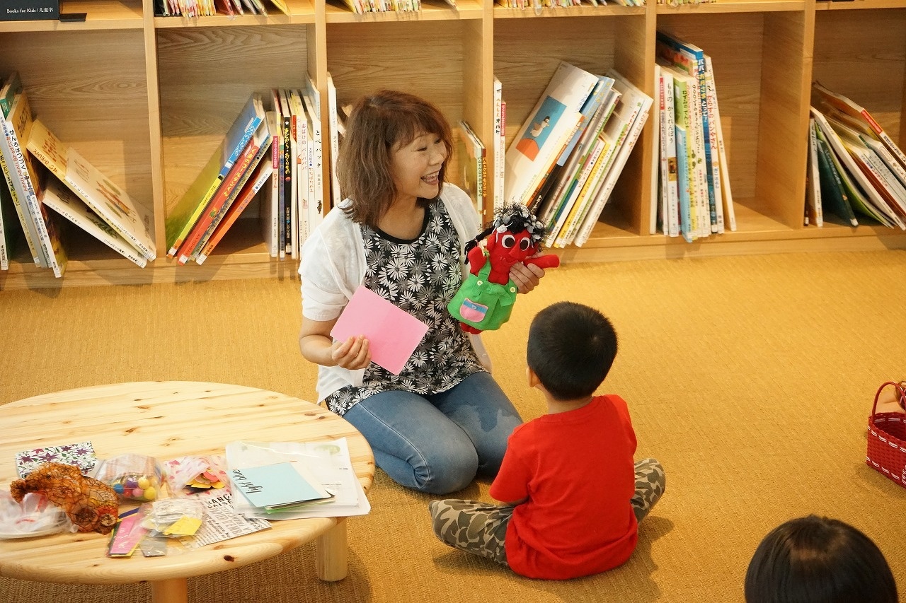 今日は第2回目となる、アーナー恵子さんの“お絵描き先生の英語教室”がありました。朝10時になると、5~6歳の子どもたちが集まってくれました。定員に達していない場合は当日参加も受け付けており、今回、たまたま訪れた方にも急遽参加していただくことができました。