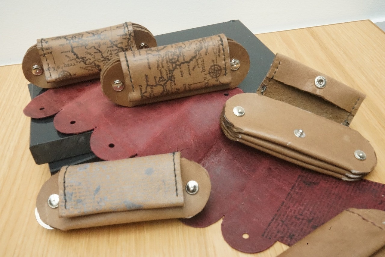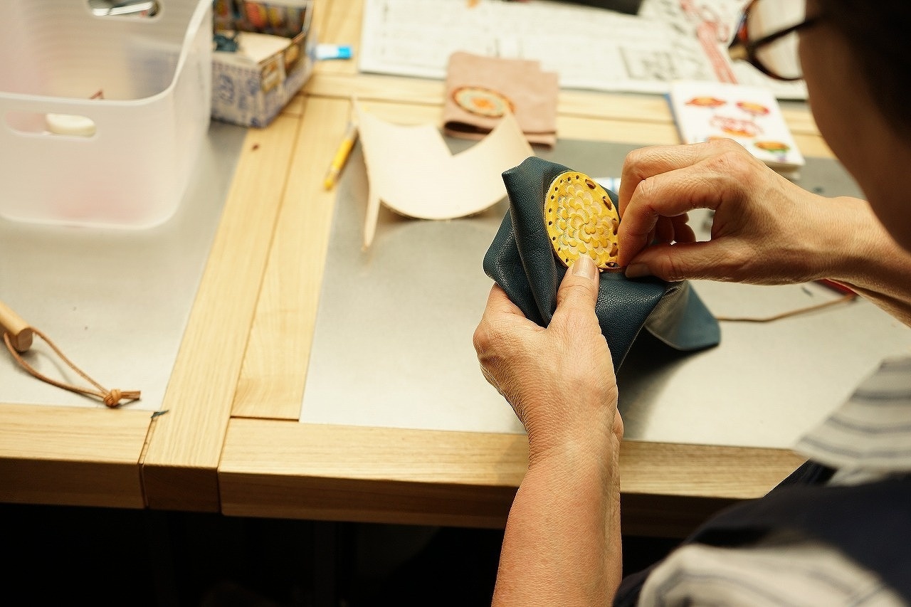 ご自身で決めた色を塗り、革を切り、手縫いで仕上げたオリジナル作品です。同じ色や形をしていても、味や個性が出て同じものは1つもありません。