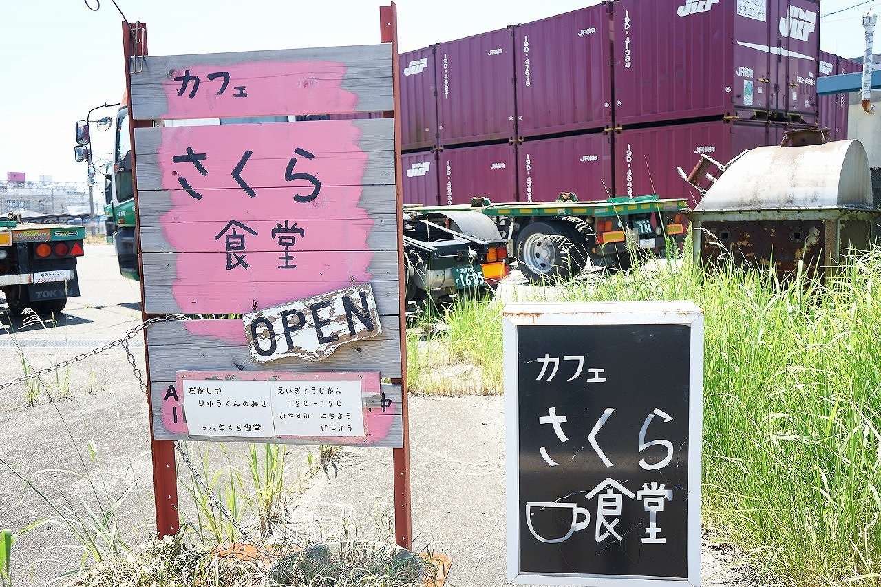 塩見さんのものづくりの宝箱が延岡駅東口徒歩7分にあります。ピンクのレトロの看板が目印の「さくら食堂」。