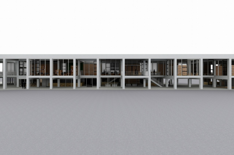 ただ、中身がまだ決まってなくて、後から階段がここにあると良いよねとか、階段をこっちに付けると外の通路が狭くなっちゃうとか、通路を確保しようとすると今度は室内が狭くなっちゃうなどなど。だから、最初に柱と梁という構造的なものが先にあってそれをいろんな人たちと意見を出しながら、ずらしたり動かしたりしていました。