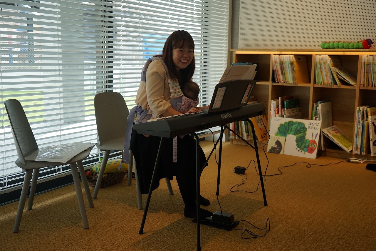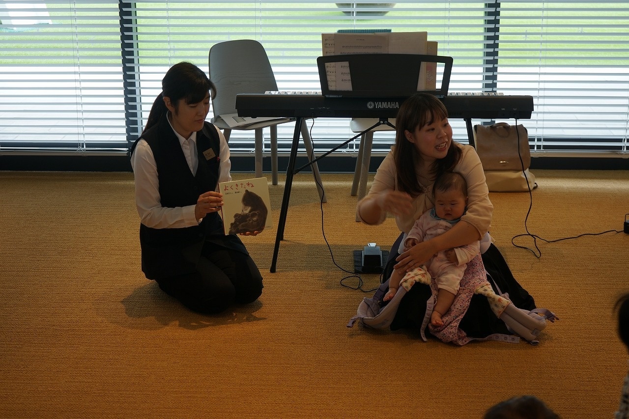 絵本と歌とで音楽のシャワーを浴びて親子で触れ合いながら、たくさんの笑顔で楽しい時間を過ごすことができたようでした。
