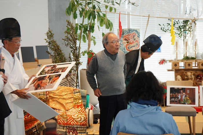 甲斐さんは各地の神楽の写真を多く撮られており、実際に延岡神楽を撮った写真パネルも見せていただきました。