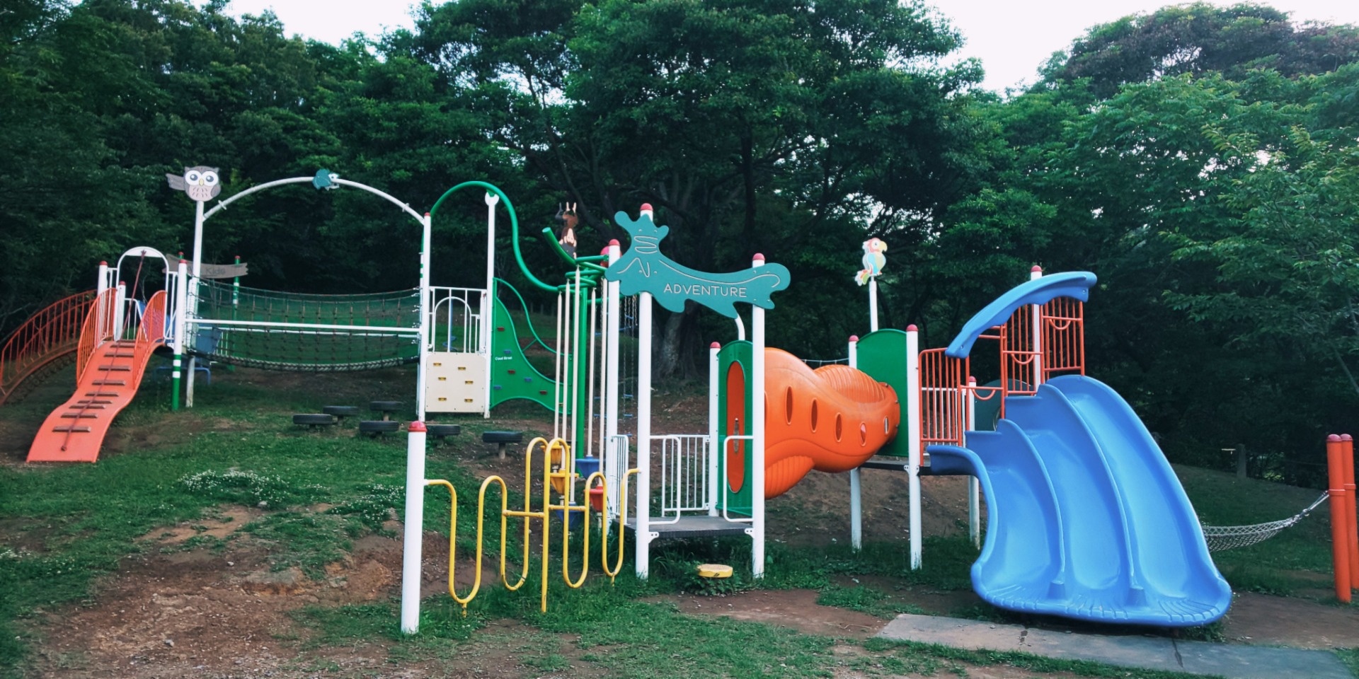 かわいい子供たちも楽しめるカラフルな遊具。豊かな自然にふれるスポットもおおく、好奇心がより刺激されました。