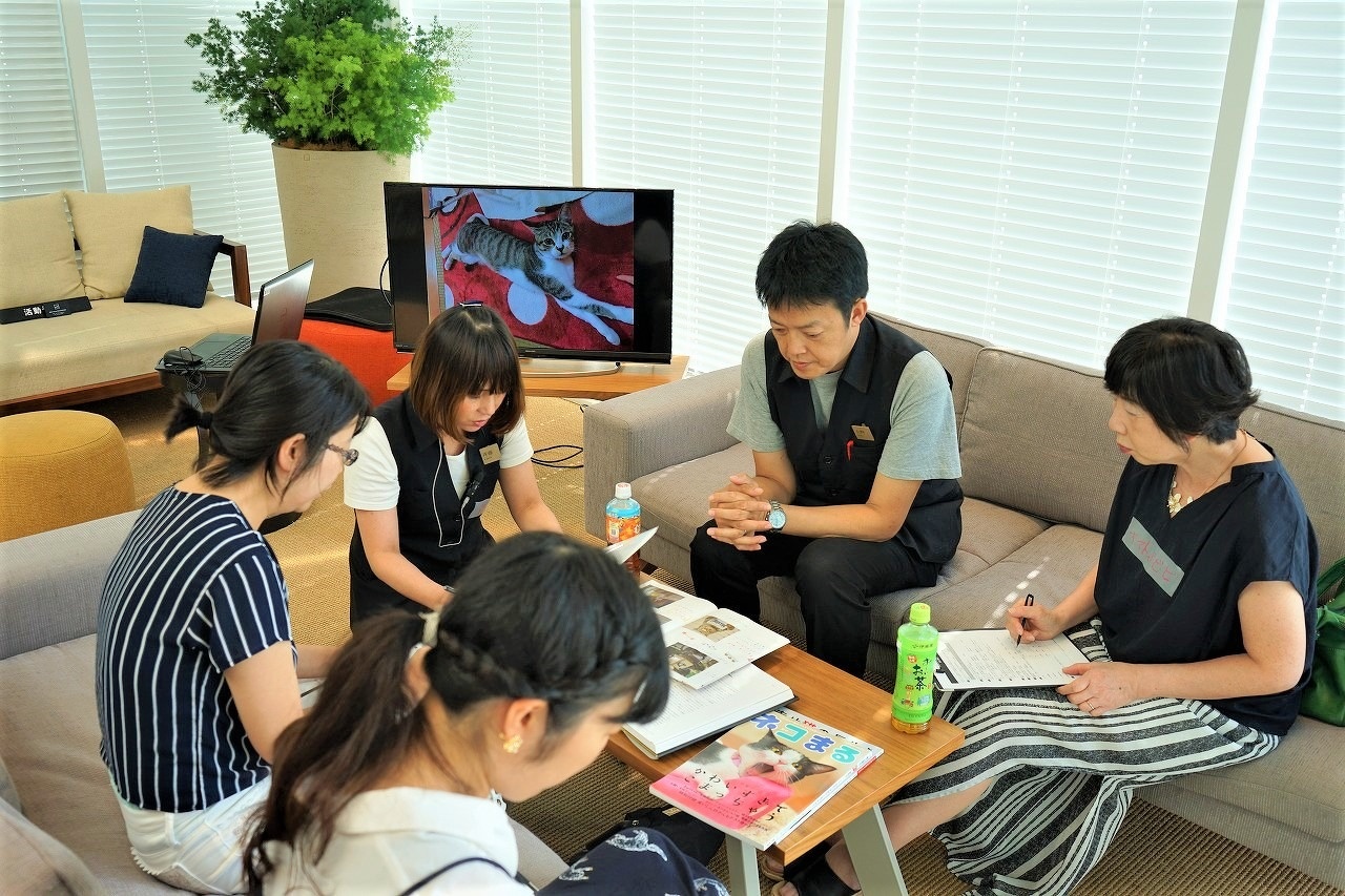 スライドショーで流れる猫ちゃんの写真を眺め、アンケートを書きながらも、まったりとお話を楽しまれる参加者のみなさんは、まさに猫のようなのんびり具合。