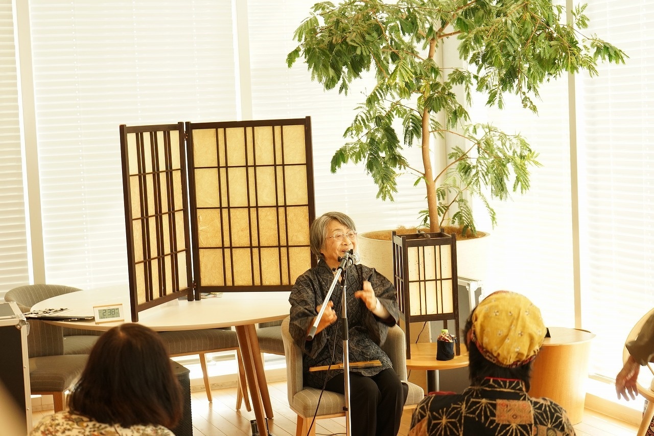 語り手に倣って、観客も身振り手振りを交えながら一緒に歌います。語り手も利き手もしきりに笑顔で、まるで童心に戻ったように心から楽しまれている姿がとても印象的でした。