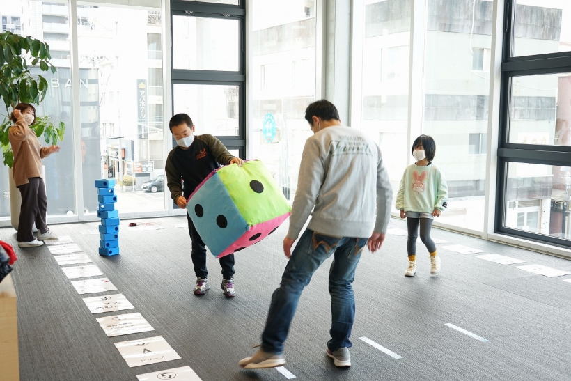 1日目から3日目まで終日間巨大すごろくと昔あそびを開催しました。