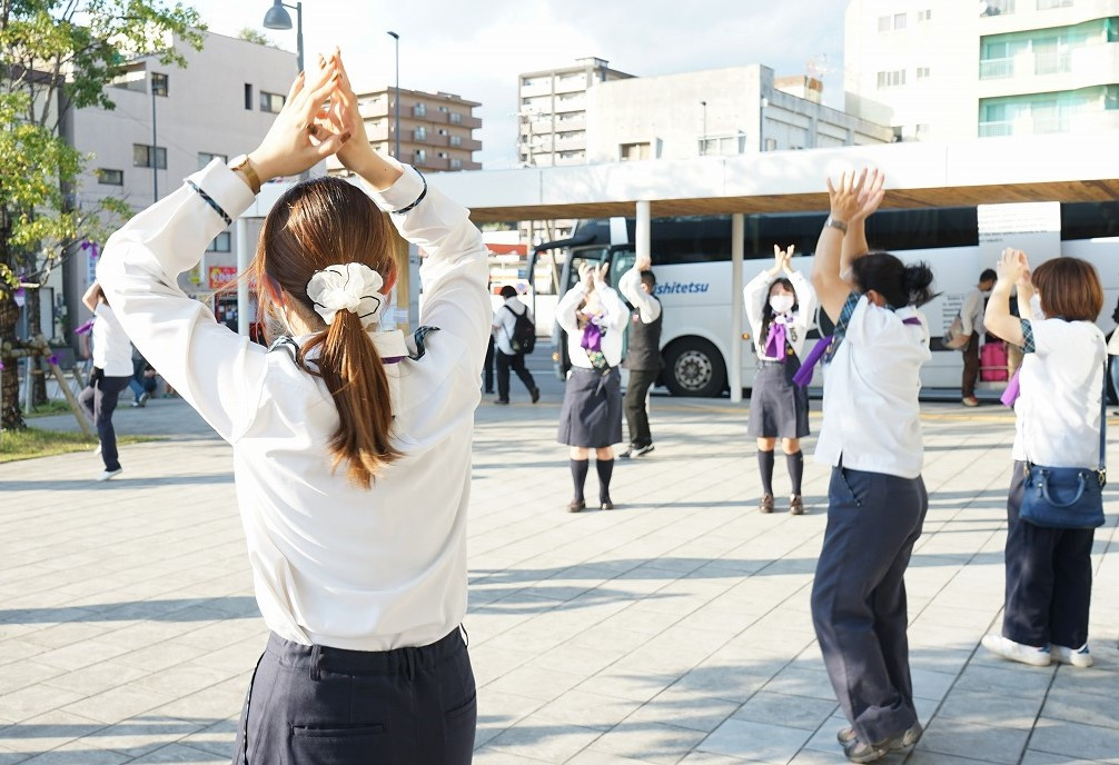 パープルリボンキャンペーンの一環としてエンクロスで行われたのは、県北地区で活動しているガールスカウト(中学生・高校生)のみなさんによる啓発スピーチとダンス。