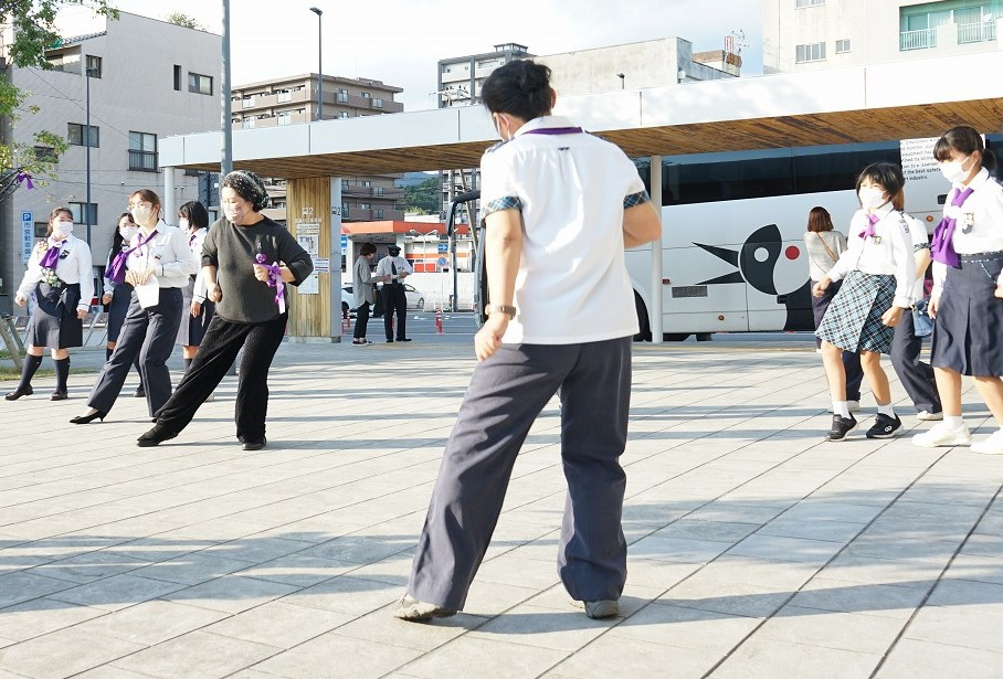 このダンスは全国で踊られていますが、今回は宮崎に深い縁のあるダンスカンパニー、んまつーポスさんが振り付けをした宮崎オリジナルバージョンで踊りました。