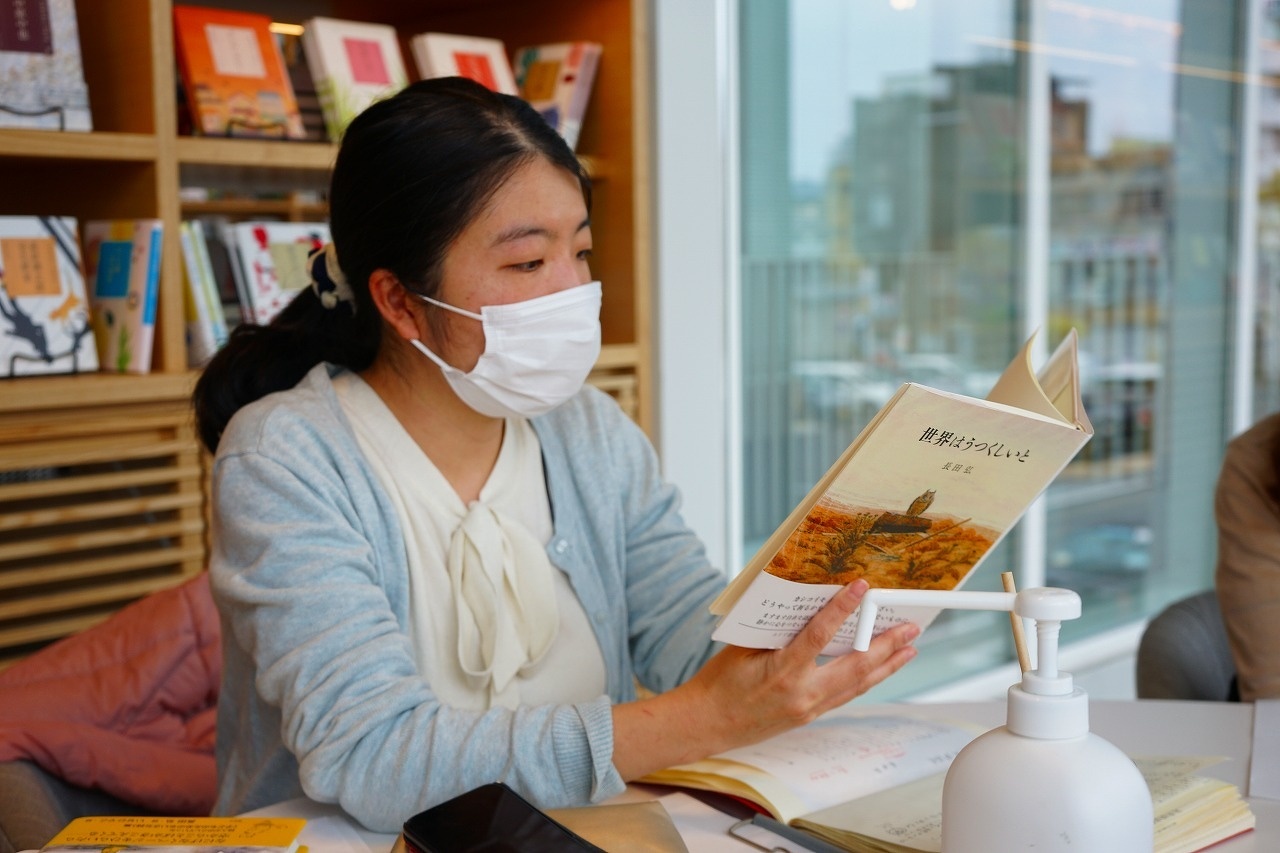 主催の緒方まほさんは、「詩や文学、言葉の好きな人たちが集い、詩を読みあい楽しむ会として、延岡に詩のムーブメントを起こしたい」という思いを持って、エンクロスが開館した2018年から『延岡詩話会~詩のある暮らしはじめませんか~』を毎月開催しています。