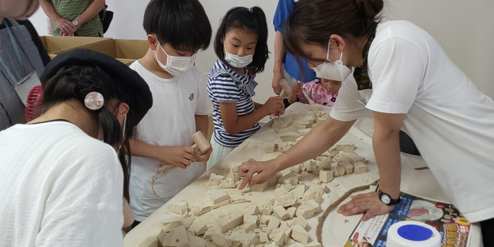 7月2日(土)、7月3日(日)の2日間、山下新天街の空き店舗を利用して、『恐竜ずき集まれ!トレジャーハンター化石発掘体験』と『あそんでまなぶワークショップ~アトモンで化学の世界を楽しもう編~』を開催いたしました。