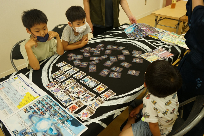 参加者のなかには、すでに自分が持っているカードを持参してくれた方も。経験者が初めて参加した子に遊び方を教える姿があり、大人が指示しなくても、教えあい、学びあう風景が見られました。