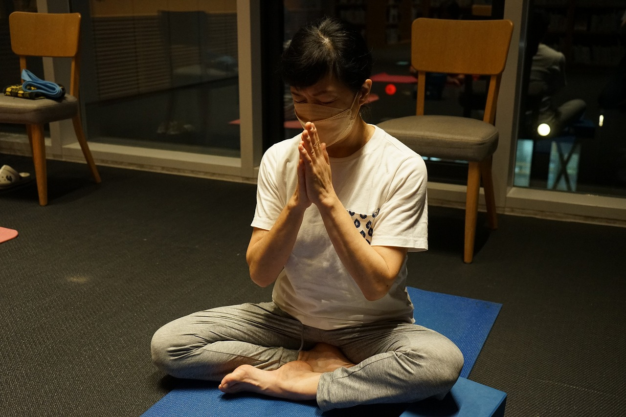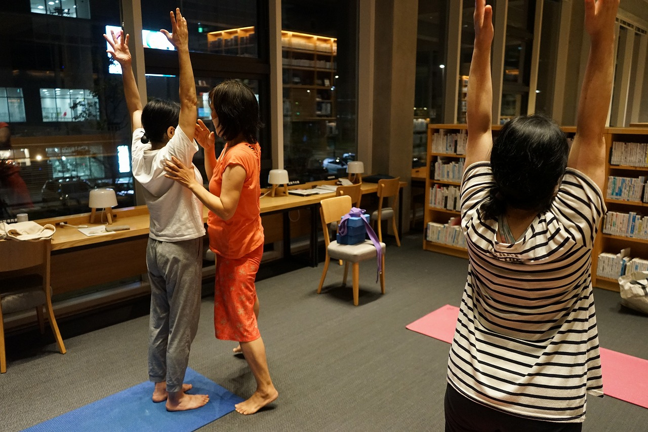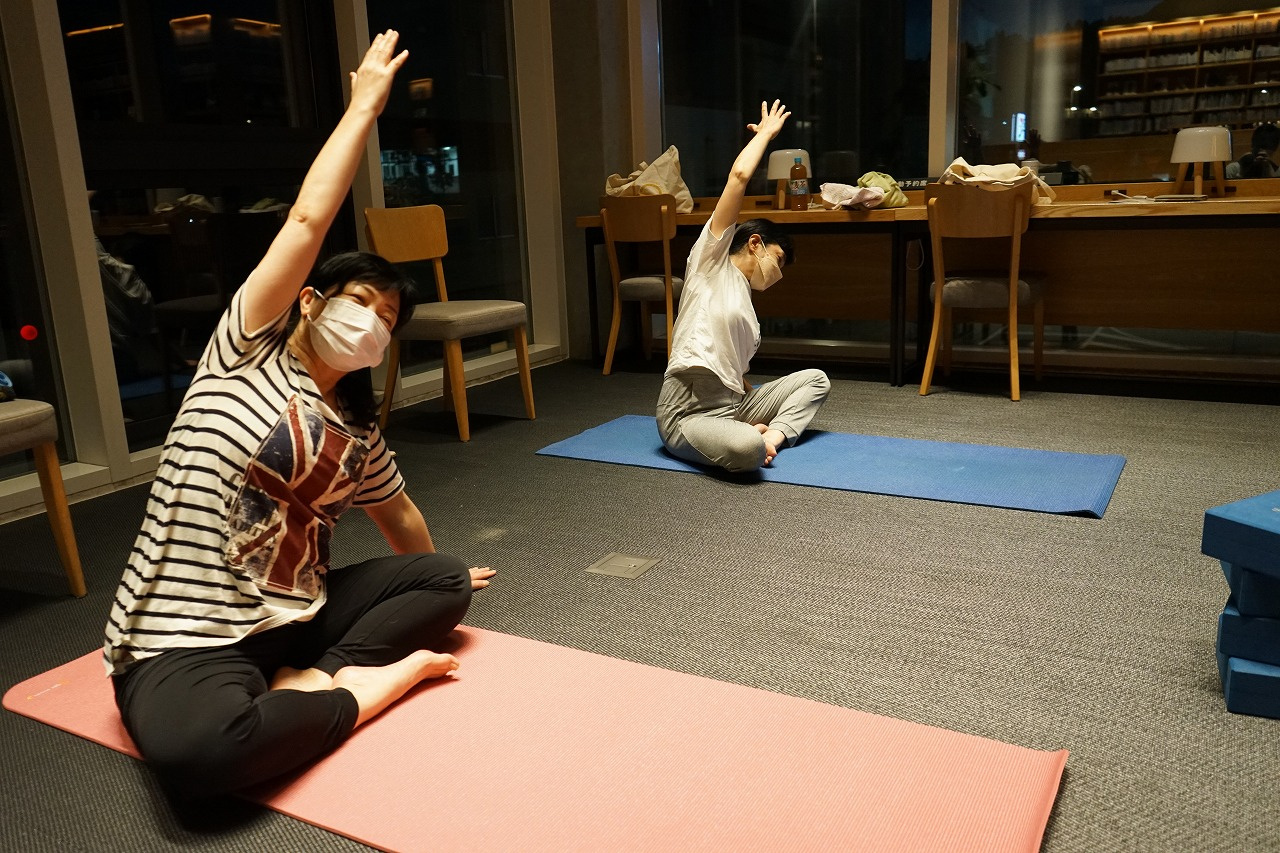 8月30日(火)、学習スペースにて『リフレッシュ・ヨガ―つなげる。むすぶ―』が開催されました。