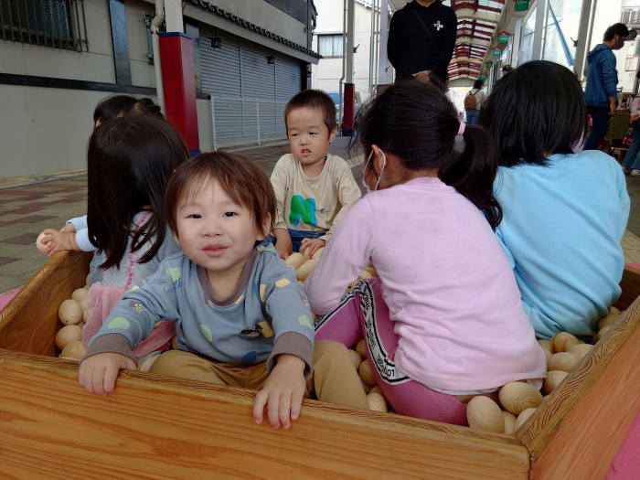午前中のメインイベントはなんといってもミニ新幹線かもめ。ご家族でいらっしゃる方が多く、我が子の乗車姿を写真に収める親御さんでにぎわいました。車掌さんの「出発進行~!!」の掛け声とともに出発し、カメラに手を振る子どもたち。ニコニコ笑顔がまぶしい光景でした。