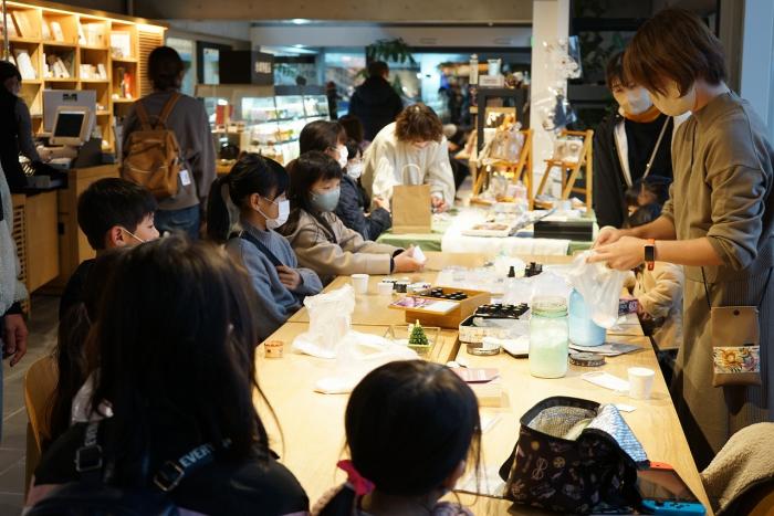 ワークショップも大にぎわい。ストライクアウトなどのゲームをしたり、クリスマスカードやマクラメ、ディンプルアート、アロマバスボムを作ったり、英語の絵本の読み聞かせを聞いたり、ボードゲームに興じたり…。