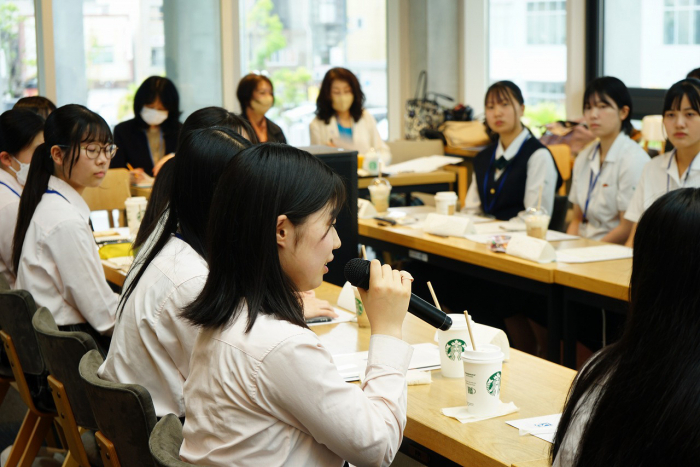 脳科学に興味があるという発言からスマートフォンが脳に与える影響の良い面・悪い面などの議論や、理系を学ぶ女性が少ないこと、『理系=男性・文系=女性』という偏見がまだまだ根強いが、理系を学ぶ女性もメイクやファッションを学ぶ男性も増えてきたことなど、もっと学びにおけるジェンダーレスを進めていきたいという話題に広がっていきました。
