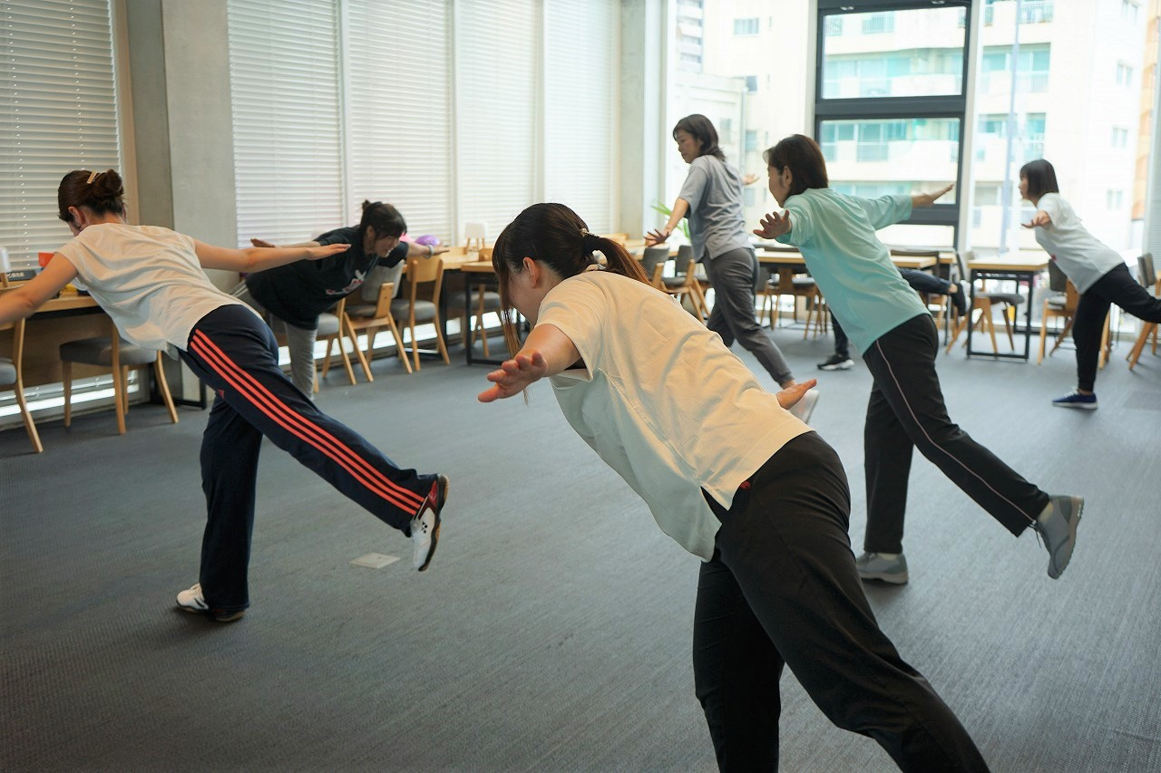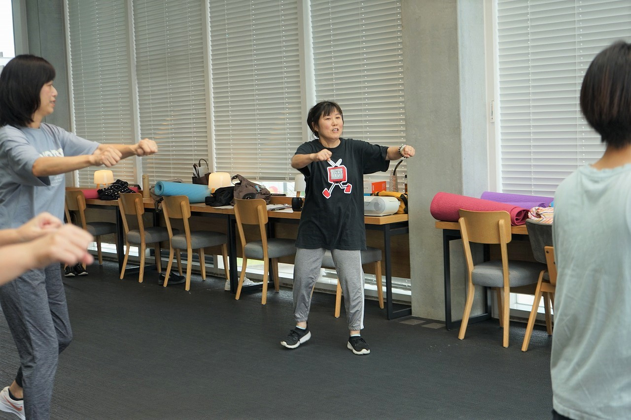 一通りの動きを教えてもらったら、今度は参加者さんのみでやっていきます。ところどころフォローしてもらいながらも、なんとか一曲通してできたみなさんの表情は達成感に満ちていました。