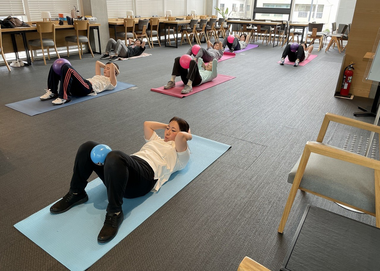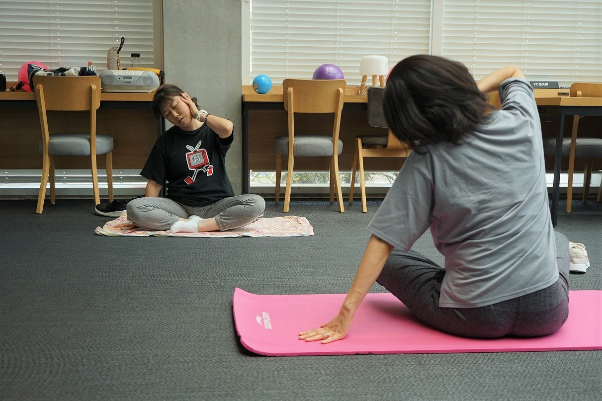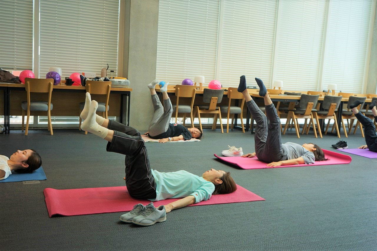 前半の動きとは打って変わって、ゆったりとした音楽を聴きながらのストレッチだったためか、眠りそうになっている人もいました。