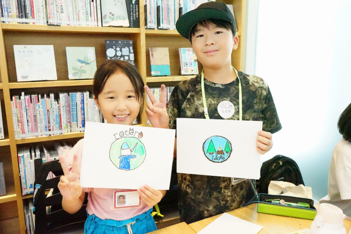 決めたテーマにそって、見た人に伝わるように形や色を考え、マークを完成させました。グラフィックデザイナーの卵たちも大満足の笑顔です。(誘い人:オノコボデザイン合同会社)