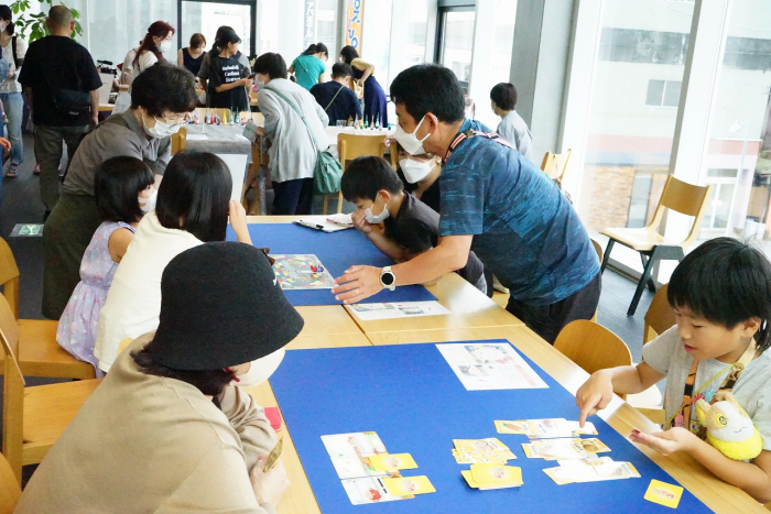 家族や友だちと一緒にやれば盛り上がること間違いなしのボードゲーム。初めて見るものばかりでも、やり方を教わって楽しく遊ぶ様子があちこちで見られました。(誘い人:すごろくやスタンドinホルモンの田中)