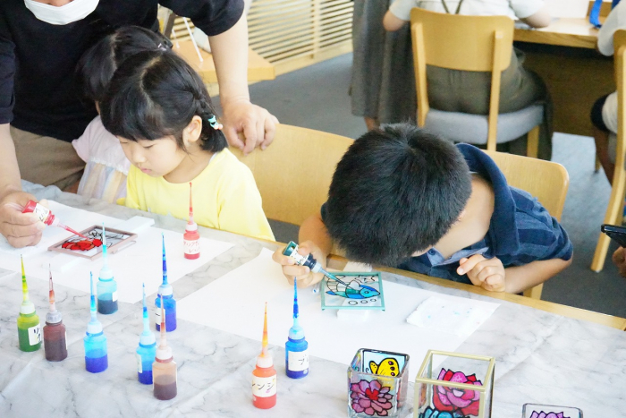 ガラスに特殊な色を塗るのはちょっと難しいけど楽しい。焦らずじっくり取り組みます。(誘い人:Be Happy)