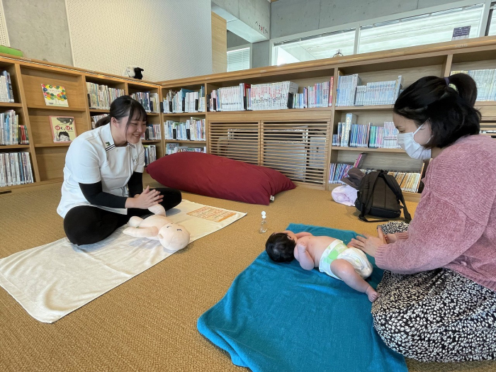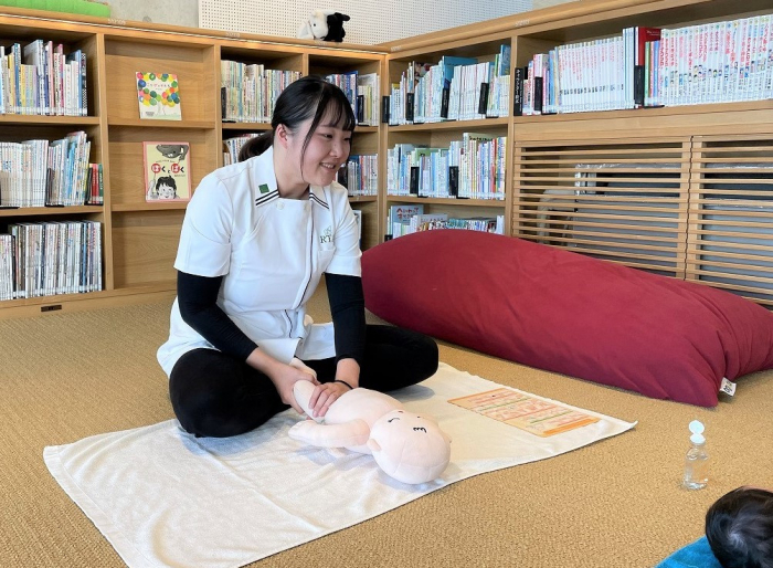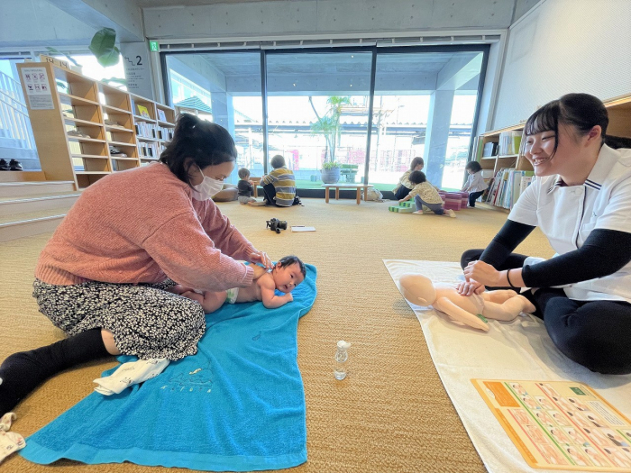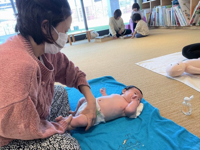 11月15日(水)、キッズスペースにて『赤ちゃんと初めての習い事 ベビーマッサージ』が開催されました。主催は「ベビーマッサージ utamaru」の橋倉千絵さん。