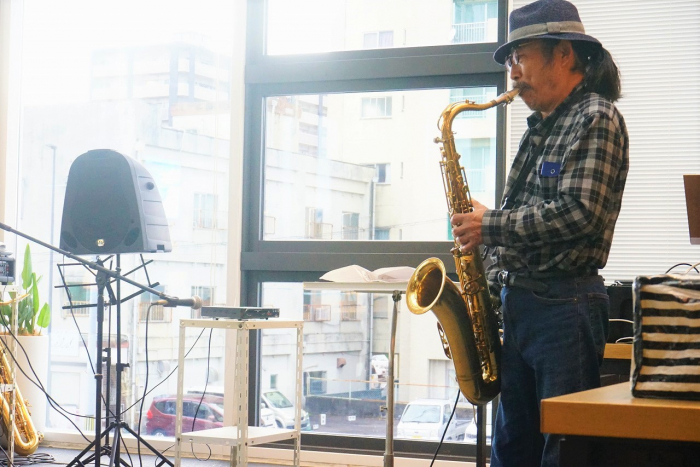 また、田中さんの演奏に魅了されてテナーサックスをはじめたという演奏歴4年の後藤さんと澤部さんを客演に迎えました。観客の皆さんの温かい拍手に包まれ、名演奏が続くライブとなりました。