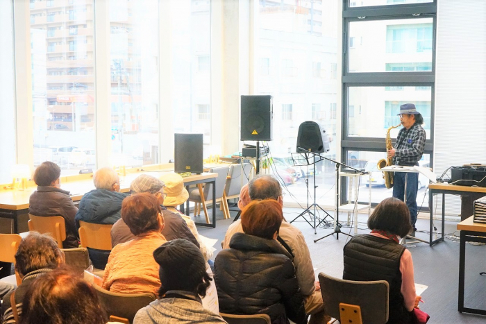 ライブでは、「どうぞ一緒に歌ってください」という田中さんからの呼びかけとともに、童謡『ふるさと』も演奏されました。思いがけないテナーサックスアレンジに驚きながらも、懐かしそうに口ずさむ観客の皆さん。会場全体が一体となって楽しめる、すてきな1時間となりました。