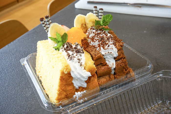 高校生が作って持ってきた、ふんわりとやわらかいシフォンケーキ。
