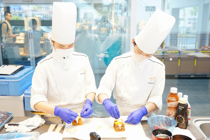 まずは高校生のお二人が見本となってフルーツサンドを作ります。
