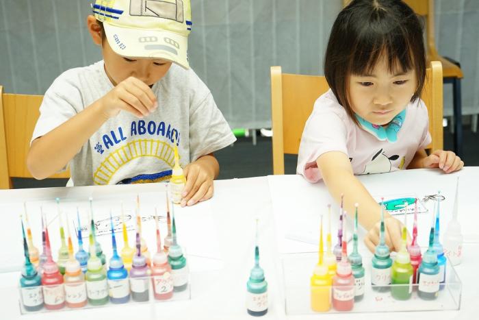 この日は電車の絵柄があり、はやぶさの色、ドクターイエローの色、と悩みながらも理想のキーホルダーを作っていました。