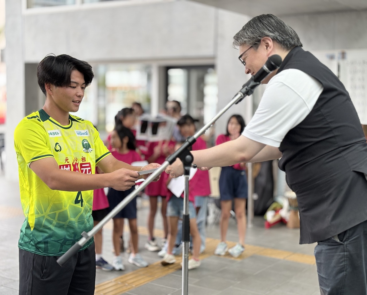 FC延岡AGATAの目的のひとつでもある「地域活性化によるまちづくり」を実現しようと選手自らが夏まつりを企画し、運営。イベントを通じて市民のみなさまと交流を深めた一日となりました。