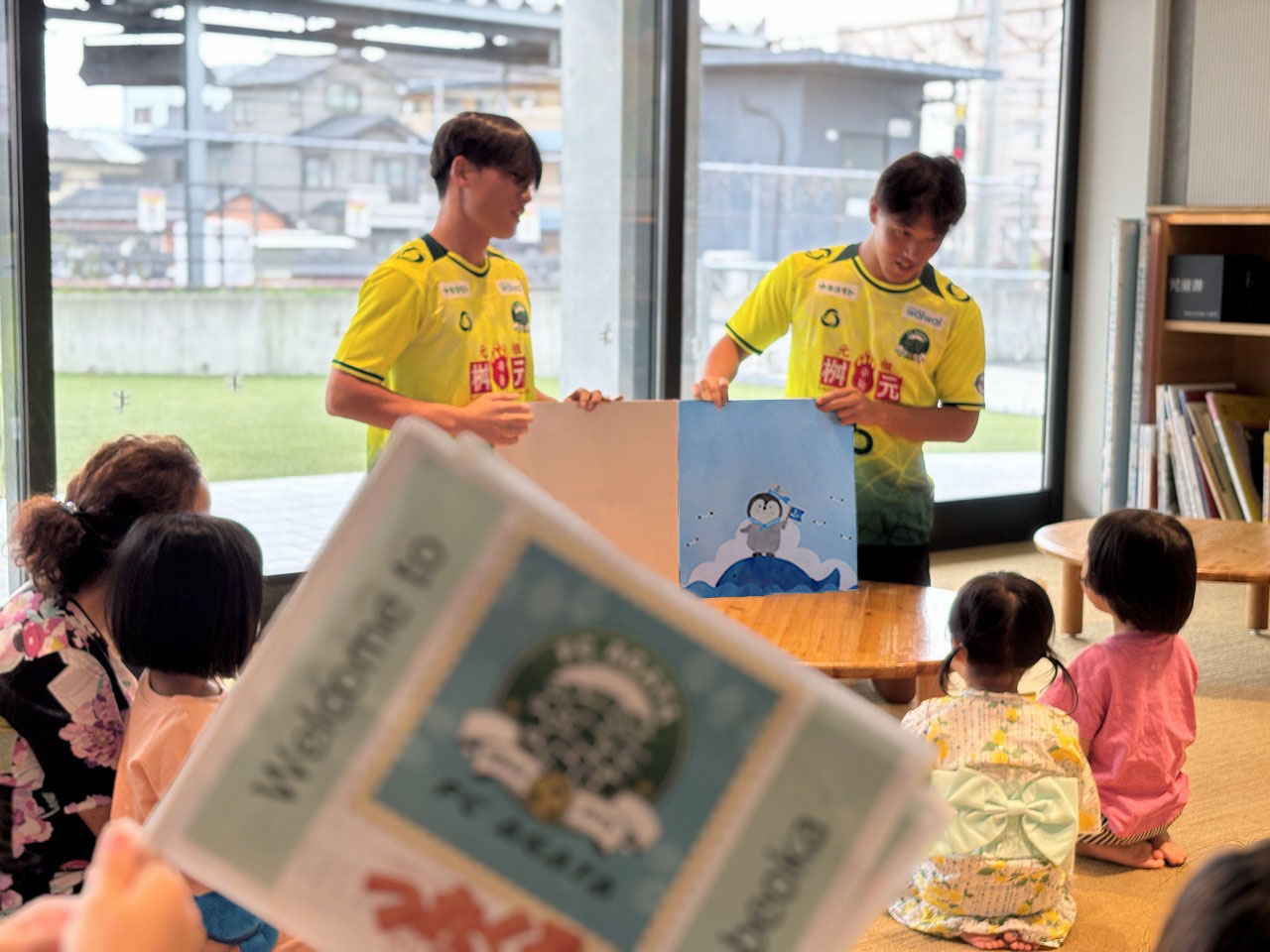 キッズスペースでは選手による大型絵本のおはなし会が開催されていました。