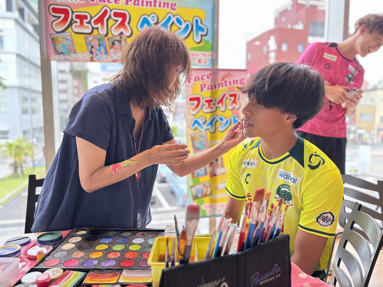 2階では、市民活動者によるフェイスペイント、シールドうちわ作り、ジェルボトルやミニマスコット作りなどのワークショップ開催されていました。