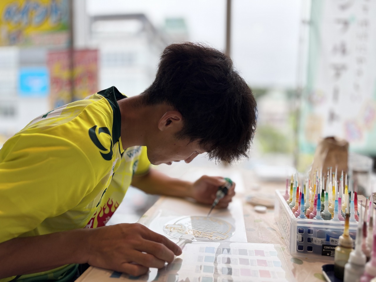 そのなかで、選手がチームロゴを絵に描いている姿がありました